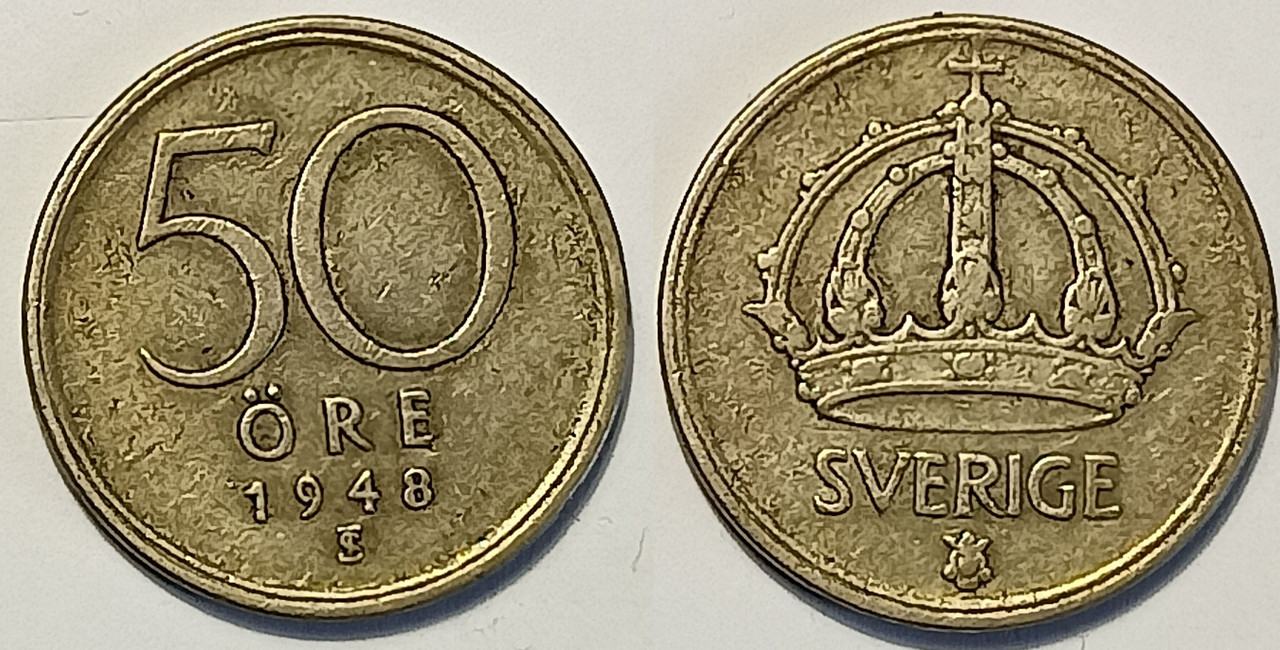 KM# 817, Schön# 45; N# 3966; Silver (.400) 4.8 g.; Gustaf VI Adolf; XF