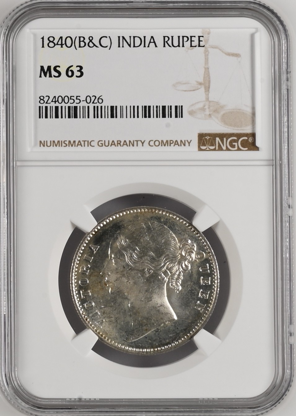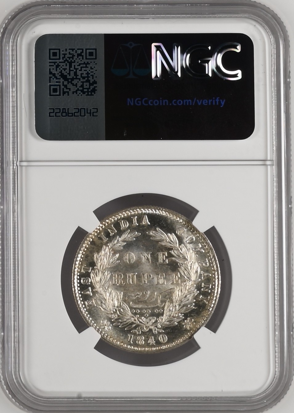 KM# 458, P# 458.1-458.10; N# 24095; Silver (.917) 11.66 g.; Obv: Bust of Queen Victoria facing left dividing a legend on both sides. VICTORIA QUEEN. Rev: EAST INDIA COMPANY ONE RUPEE یک روپیہ 1840;