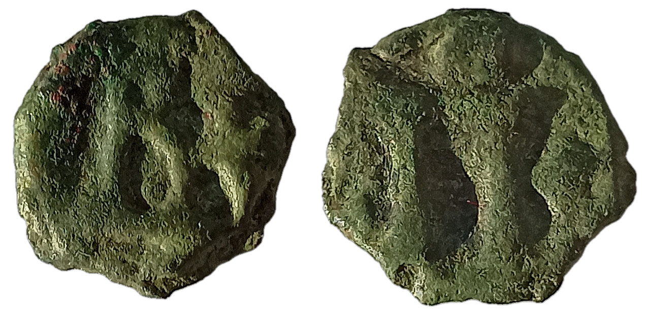 SB: 1720;Bronze 1.16 g.; Obv: B+ Large B on exergual line, to right cross. Rev: oΠ Large Π+ o above.Cross to right or cross right and left.; VG