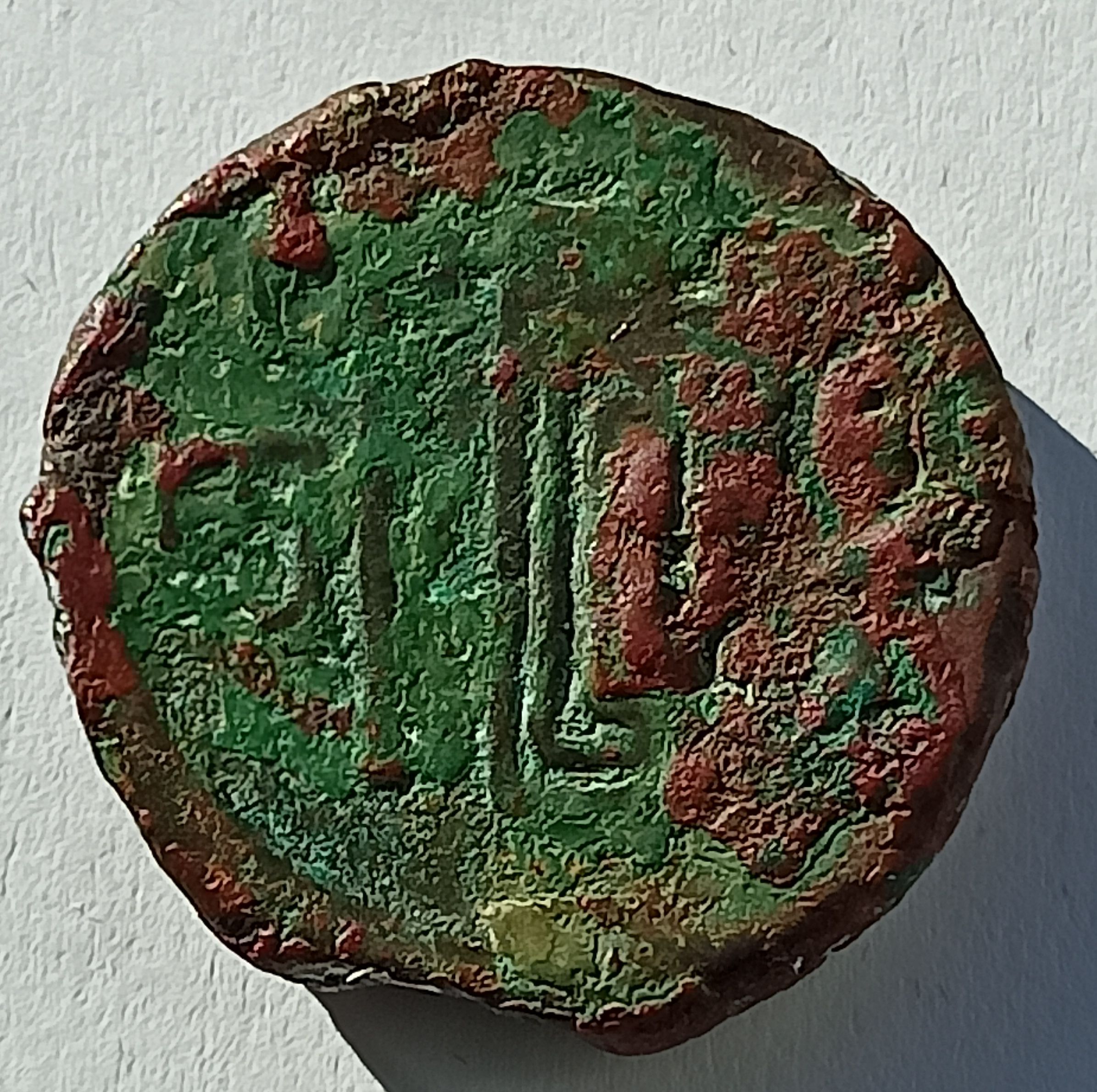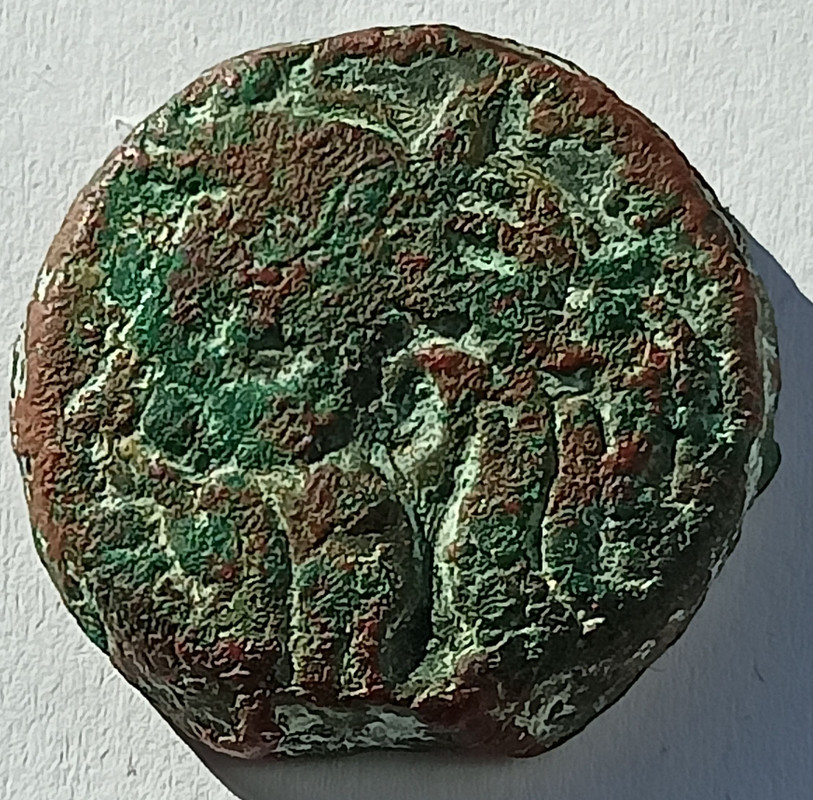 ;Bronze 10.79 g.; Obv: Head of river god Borysthenes left. Rev: Axe and bowcase; monogram to left, OΛBIO to right. Unusual portret and rare monogram.; VF