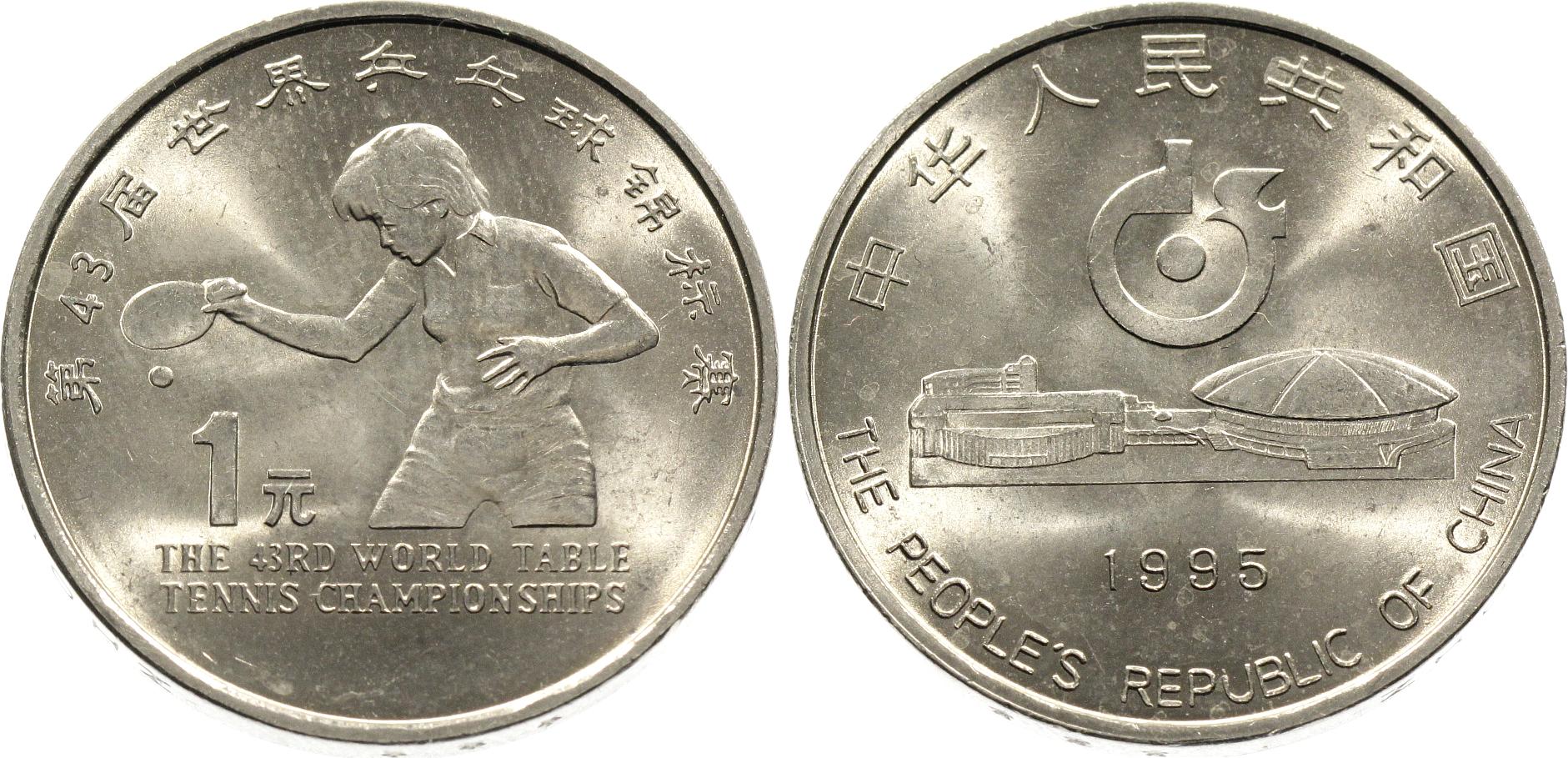 KM# 710; N# 13869; Nickel Plated Steel; 1995 World Table Tennis Championships, Tianjin; UNC