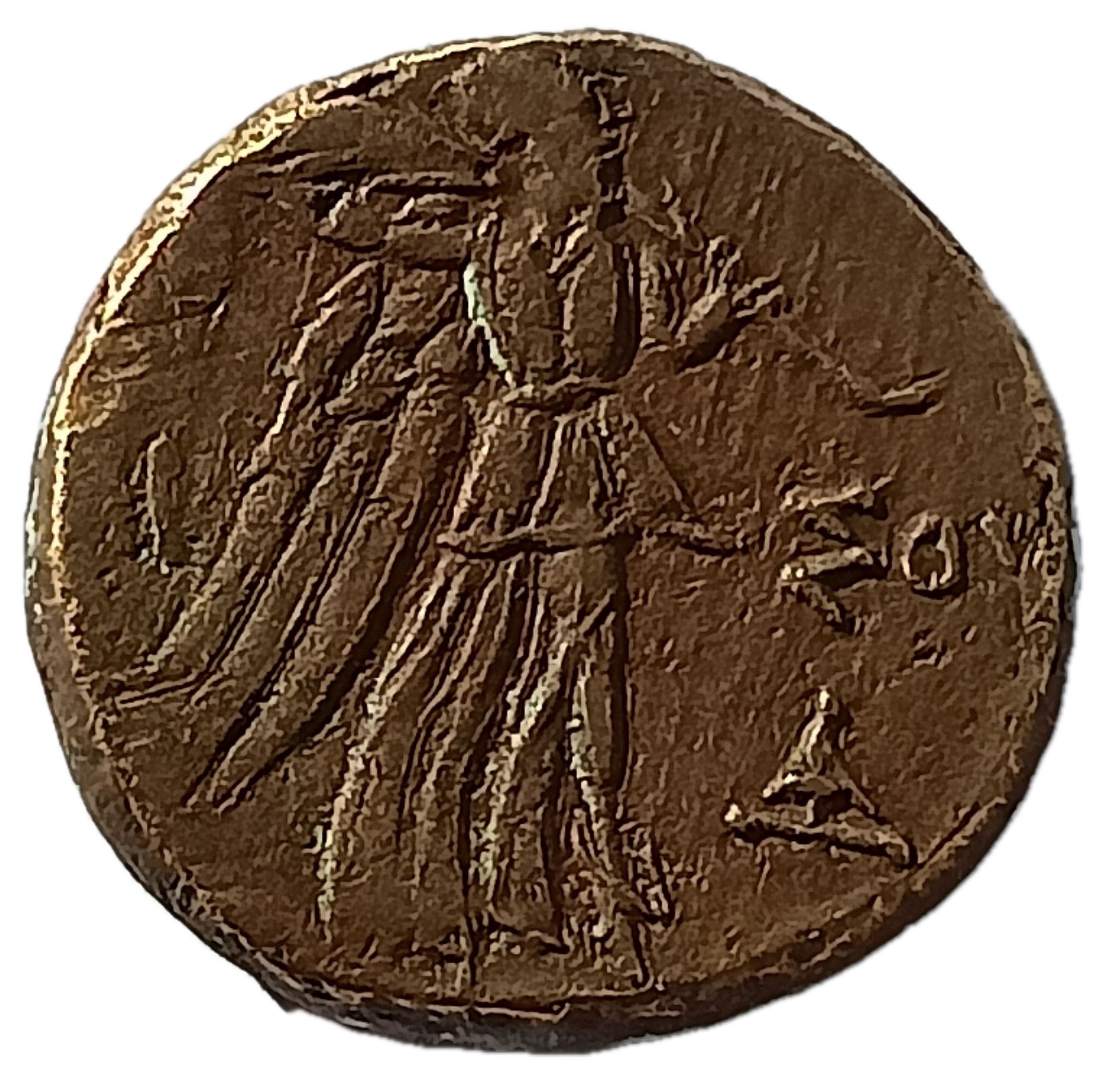SNG BM Black Sea# 1177-1191, GCV# 3642; N# 57337; Bronze 8.53 g.; Obv: Gorgoneion on aegis (shield). Rev: Nike advancing right, holding wreath and palm branch. ΑΜΙ ΣΟΥ. Mint Amisus, Pontus, modern-day Samsun, Turkey; XF