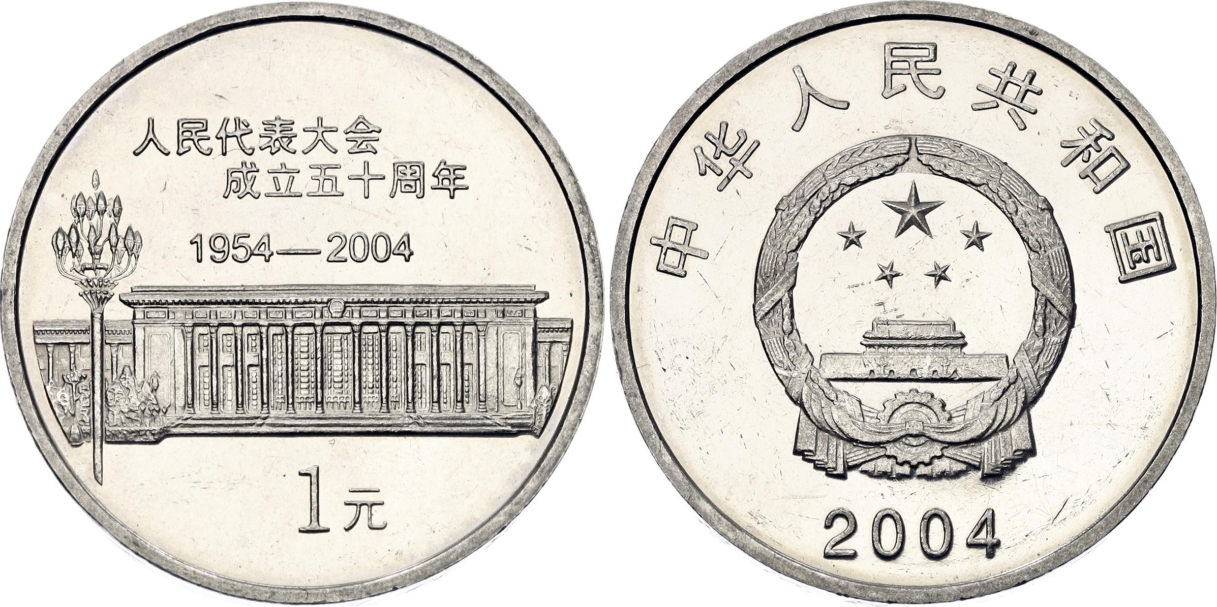 KM# 1523; N# 9386; Nickel plated Steel., Prooflike; 50th Anniversary of the People’s Congress; UNC
