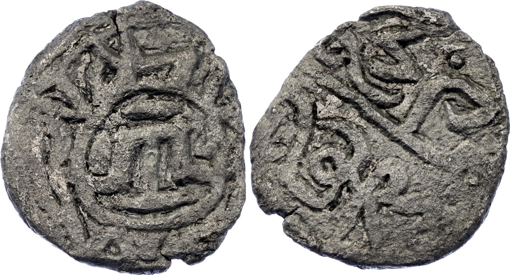 Ret.# 92-96; N# 125357; Silver 0.67 g.; Obv: Mengli Khan / bin Hajji Giray/ Khan. Rev: Mint / Qirq Yer . 894. Tamgha in center;