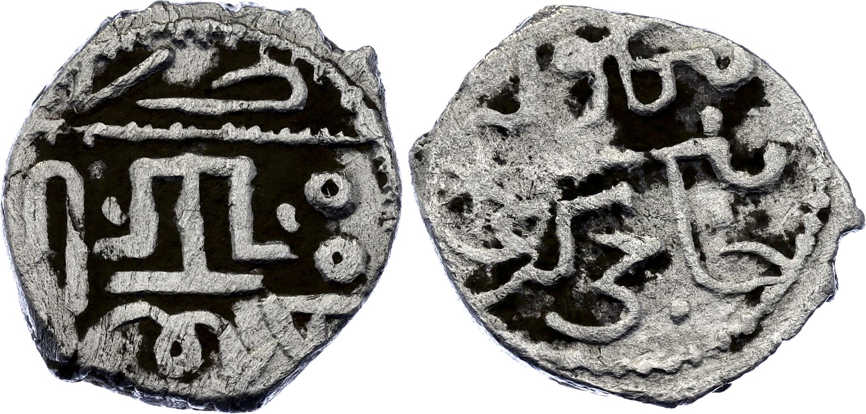 Ret.# 139-145; N# 80827; Silver 0.67 g.; Obv: Mengli Khan / bin Hajji Giray/ Khan. Rev: Mint / Caffa . 900. Tamgha in center; XF