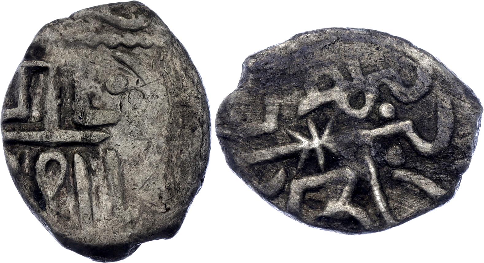 Ret.# 167 – 169; N# 80828; Silver 0.67 g.; Obv: Mengli Khan / bin Hajji Giray/ Khan. Rev: Mint / Caffa . 911 Tamgha in center;