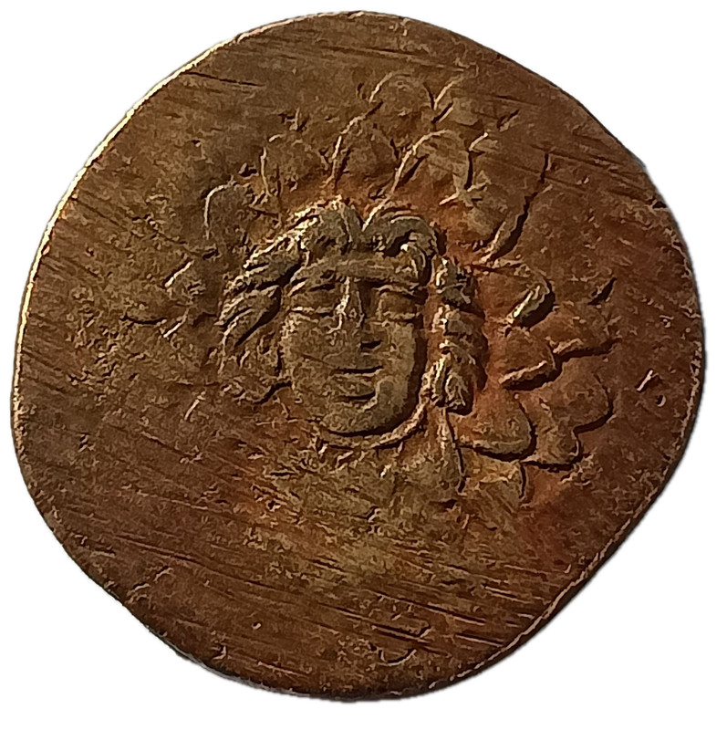 SNG BM Black Sea# 1177-1191, GCV# 3642; N# 57337; Bronze 7.44 g.; Obv: Gorgoneion on aegis (shield). Rev: Nike advancing right, holding wreath and palm branch. ΑΜΙ ΣΟΥ. Mint Amisus, Pontus, modern-day Samsun, Turkey; VF