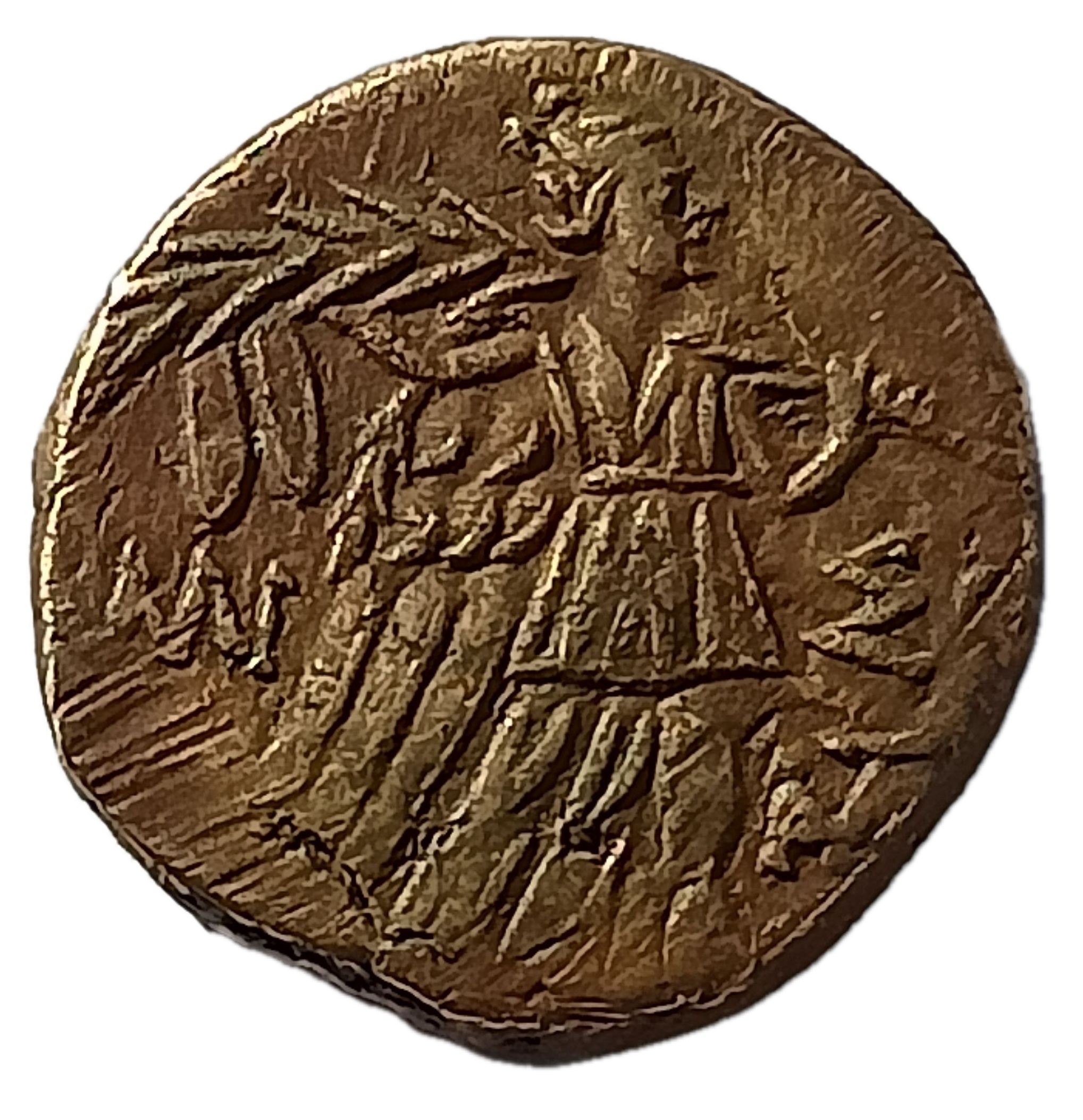 SNG BM Black Sea# 1177-1191, GCV# 3642; N# 57337; Bronze 6.40 g.; Obv: Gorgoneion on aegis (shield). Rev: Nike advancing right, holding wreath and palm branch. ΑΜΙ ΣΟΥ. Mint Amisus, Pontus, modern-day Samsun, Turkey; VF