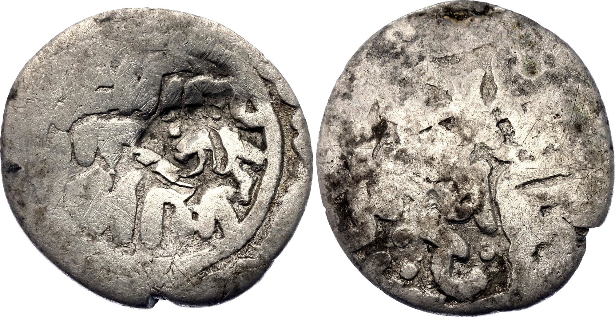 ;Silver 0.91 g.; Countermarked “Khan” on Uzbeg Khan dang; XF