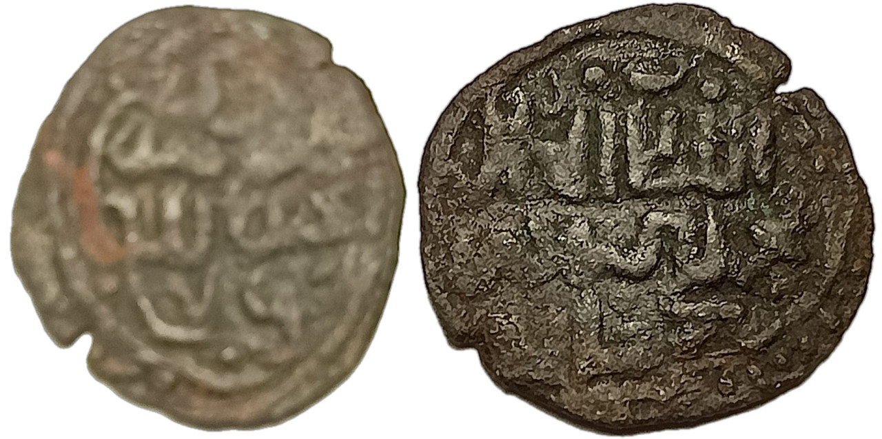 Sagdeeva# 277, Album Islamic# 2031.2, Pyr# 216, Zeno cat# 1056; N# 162997; Obv: Sultan the Just / Mohammed Berdi / Beg Khan. Rev: Mint of Saray / al-Jadida / 759. Coin minten before figt Sinia Voda; VF;