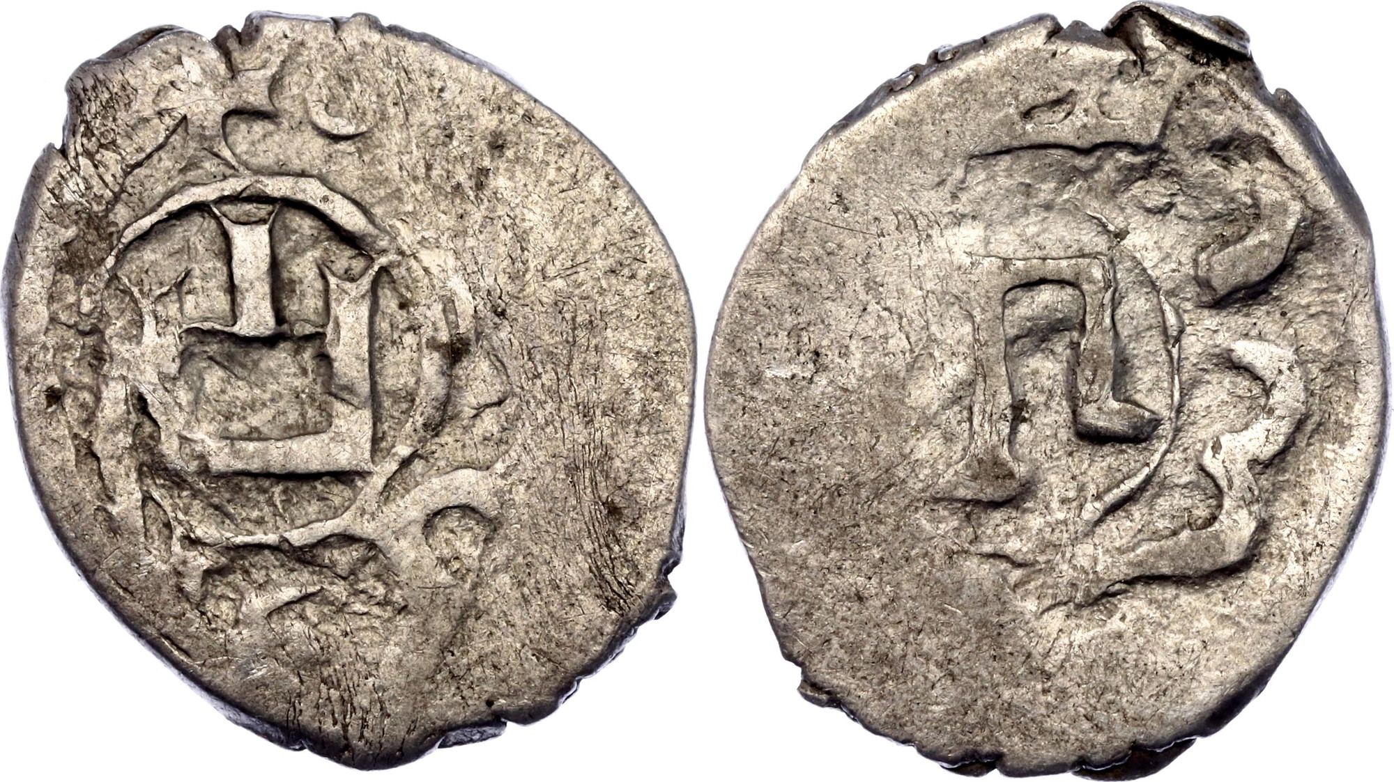 Lunardi# C40-46;Silver 0.63 g.; Joint issue Genoa and Hajji Girey I (1420-1466) in genovese colonie in Crimea – Caffa; Bilingue; VF