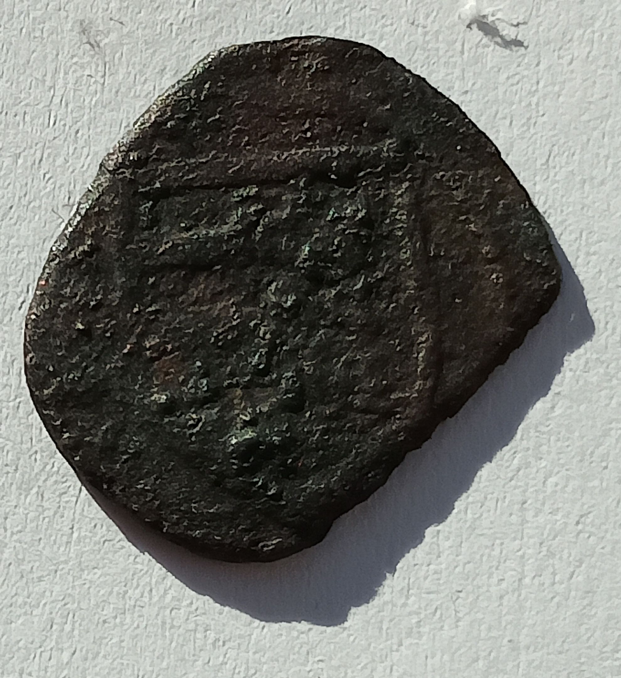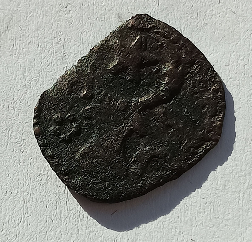 ;Copper 0.66 g.; Obv: Auroch head, star between horns, at right rosette, at left crescent. Rev: Diivided shield; VG