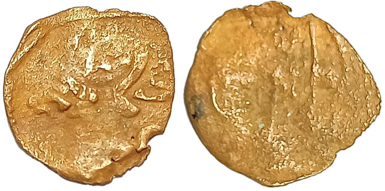 ;Copper 0.36 g.; Obv: Auroch head, star between horns, at right rosette, at left crescent. Rev: Diivided shield; VG