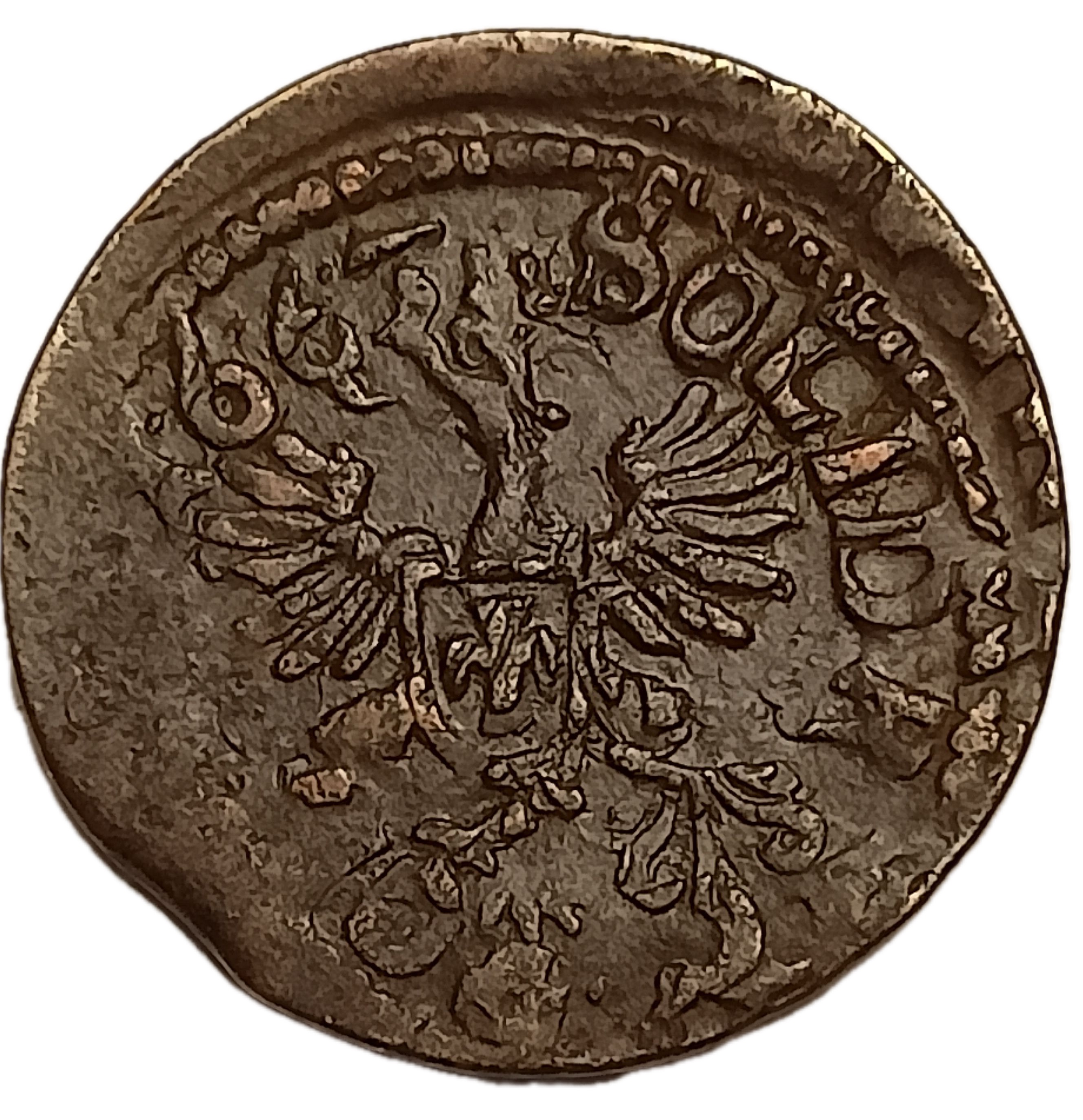 Wol# KU63, KM# 110; N# 119296; Copper 1.44 g.; Jan II Kazimierz Waza; Mint Ujazdów; F-VF