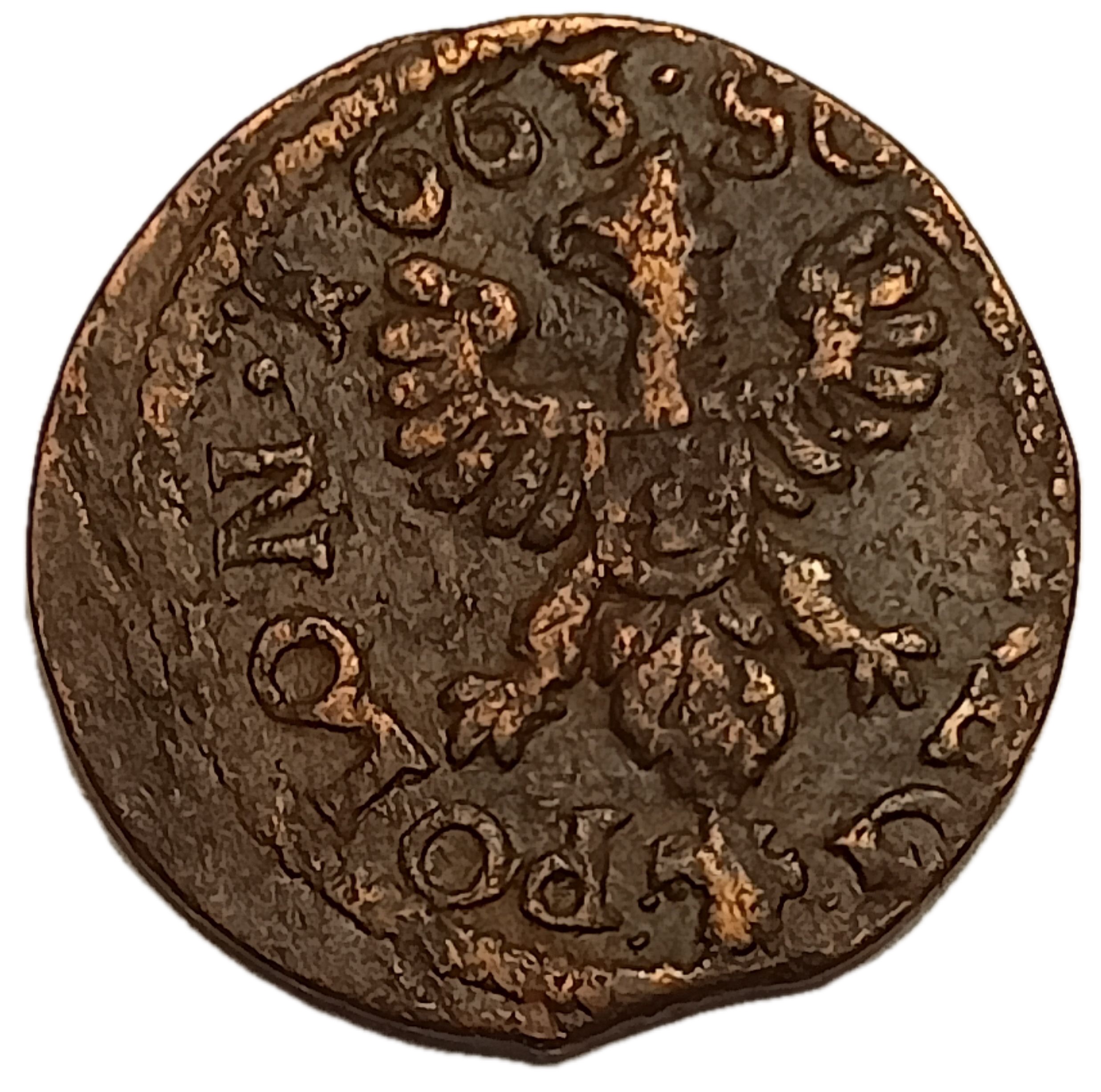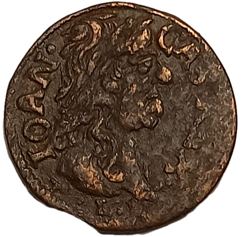Wol# KU63, KM# 110; N# 119296; Copper 1.28 g.; Jan II Kazimierz Waza; Mint Ujazdów; F-VF