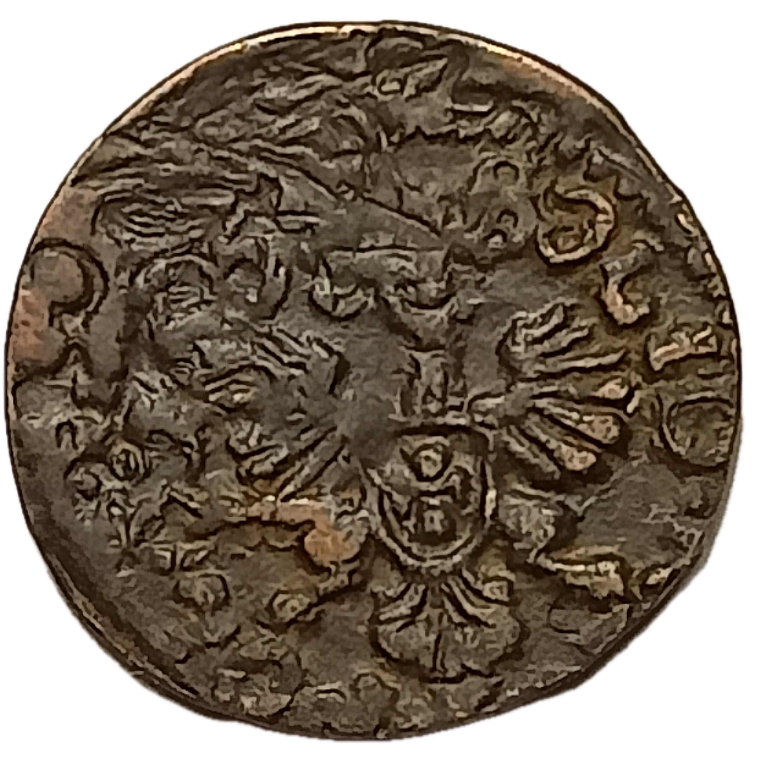 Wol# KU65, KM# 110; N# 119299; Copper 1.45 g.; Jan II Kazimierz Waza; Mint Ujazdów; F-VF