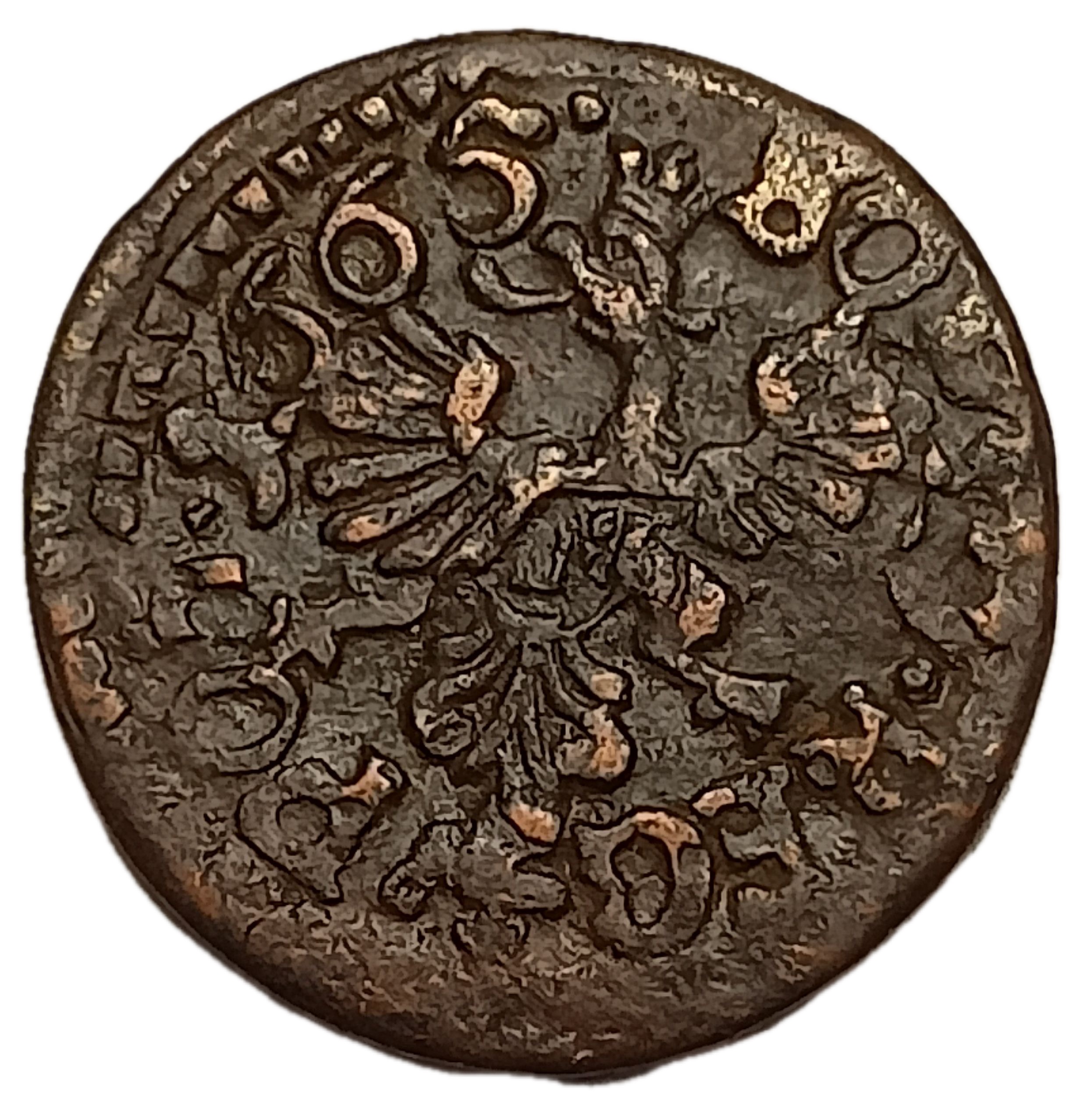 Wol# KU65, KM# 110; N# 119299; Copper 1.10 g.; Jan II Kazimierz Waza; Mint Ujazdów; F-VF