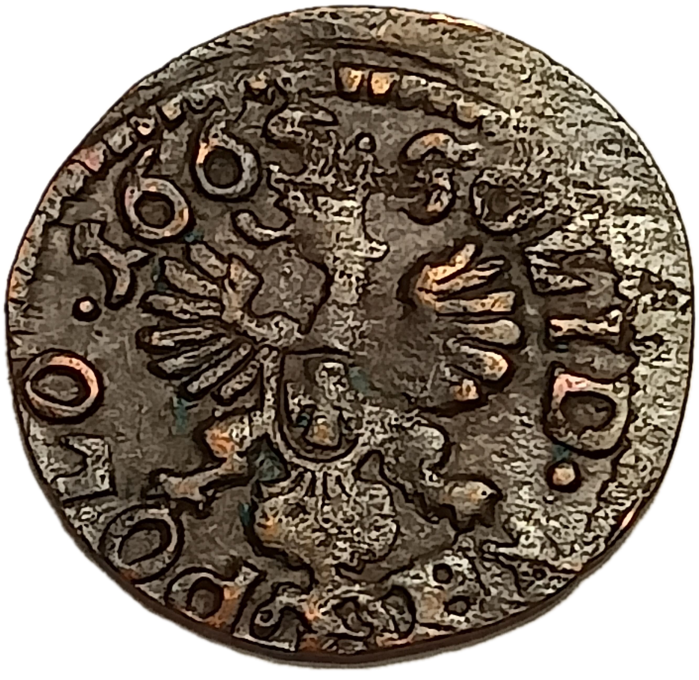 Wol# KU65, KM# 110; N# 119299; Copper 0.85 g.; Jan II Kazimierz Waza; Mint Ujazdów; F-VF