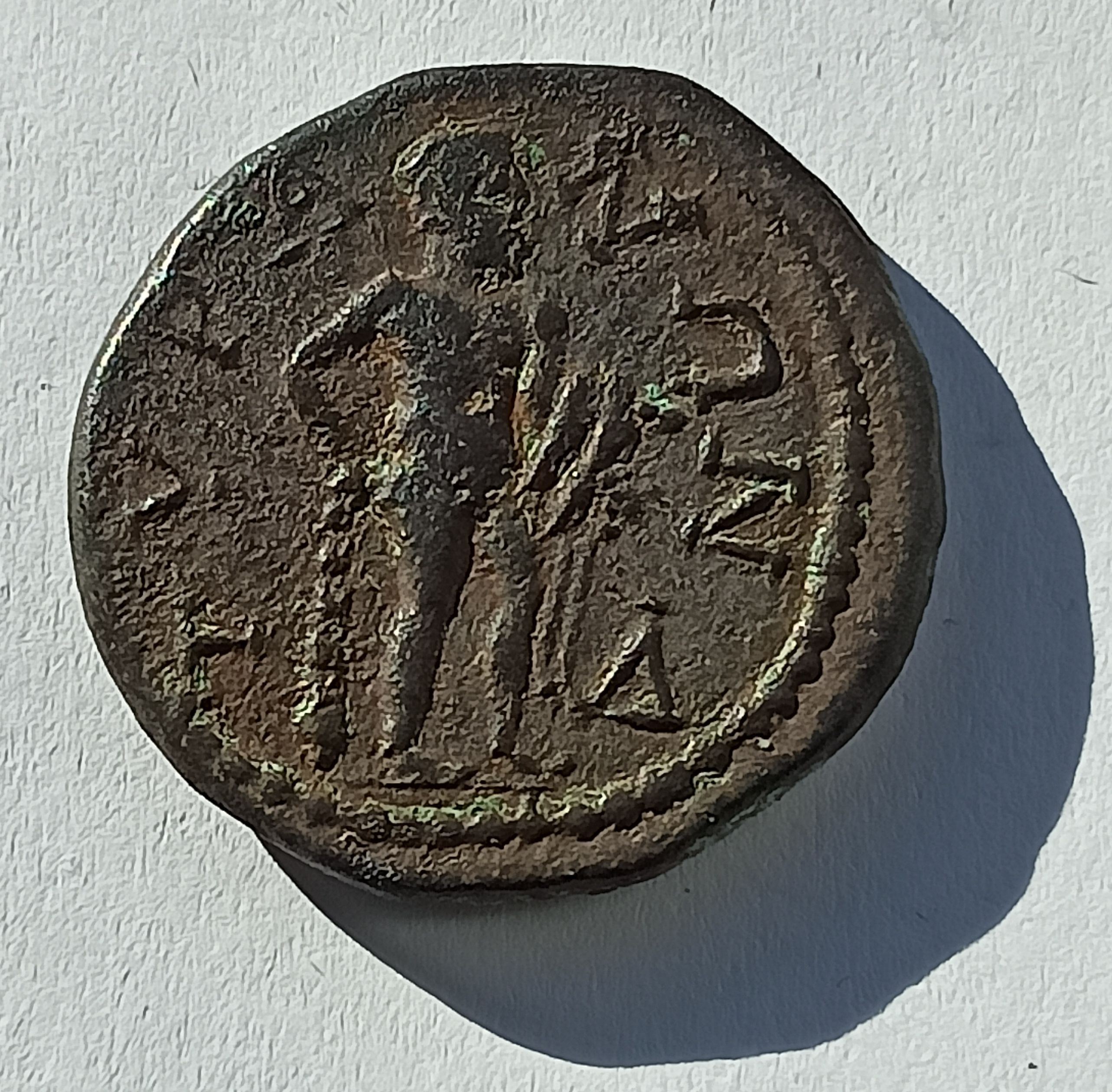 SNG Moskau# 129-34;Bronze 6.25 g.; Obv: ΑΥ Κ Λ CЄΠΤΙ CЄΥΗΡΟC Π Laureate head of Septimius Severus to right. Rev. TYPANΩN Herakles standing front, head to right, holding club set on ground in his right hand and lion skin in his left; to right, Δ.; VF